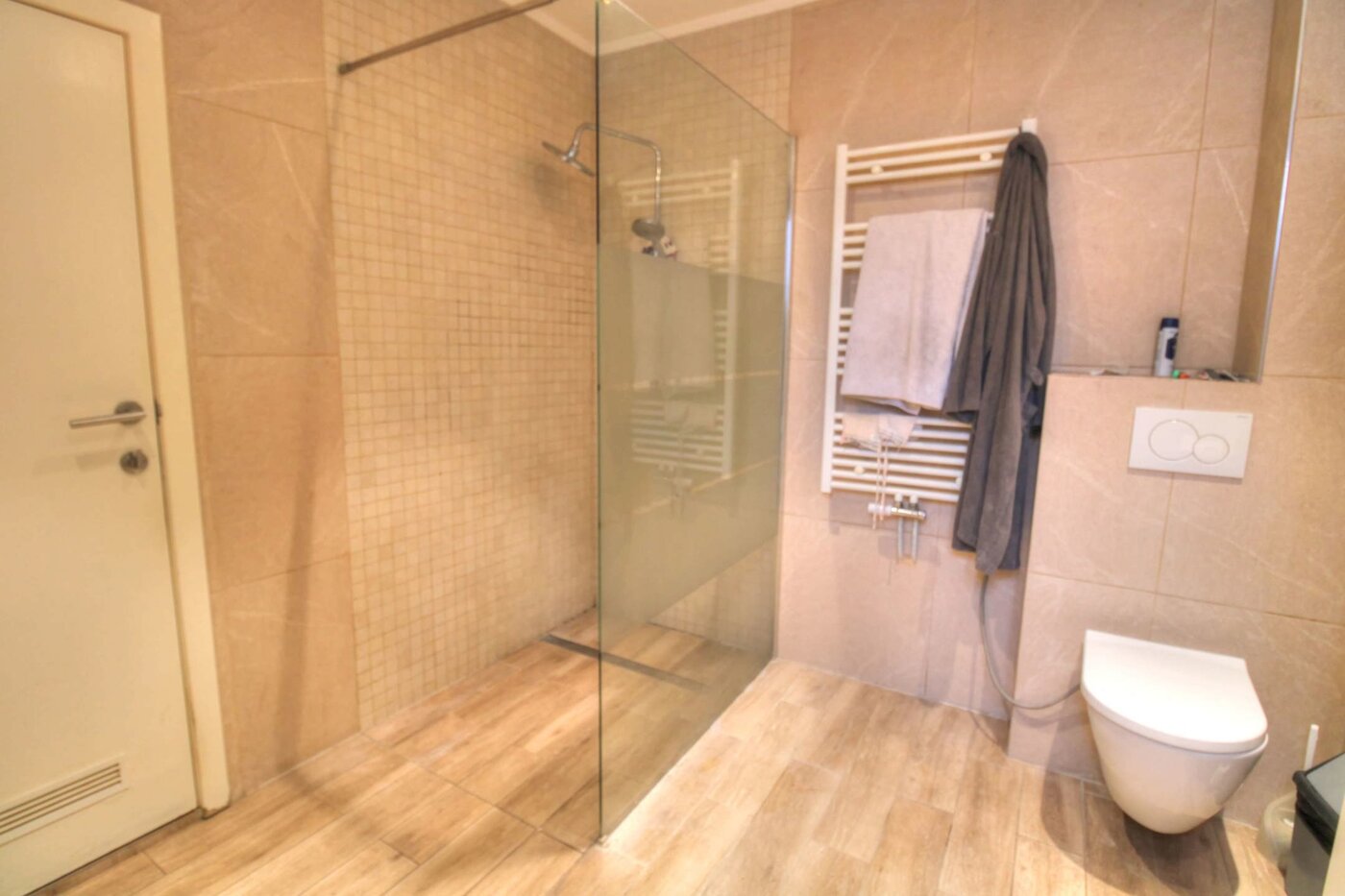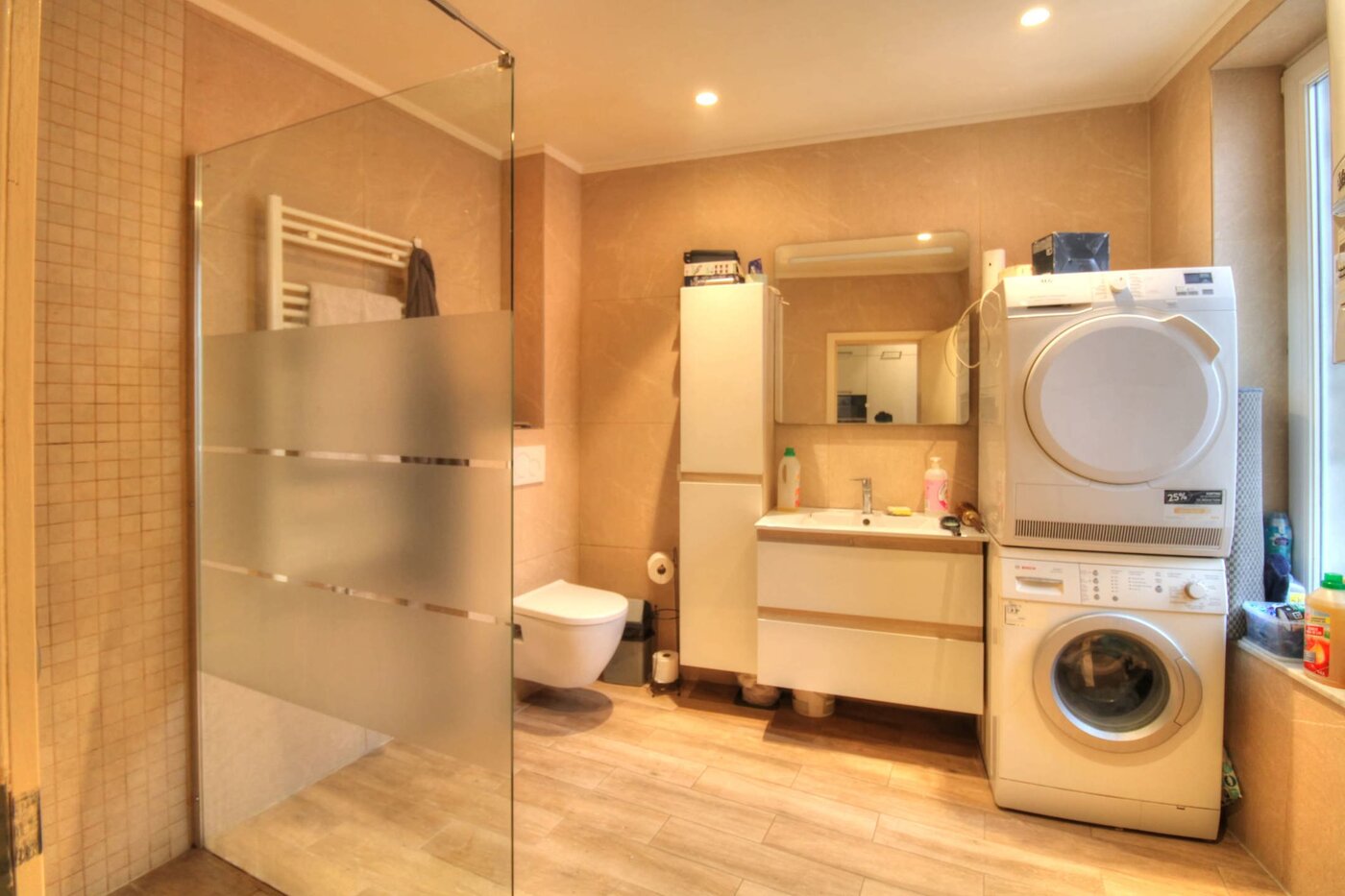 La disposition intérieure a été pensée pour votre confort : vous y découvrirez un séjour baigné de lumière de ± 21 m², une cuisine moderne entièrement équipée offrant de nombreux espaces de rangement, ainsi que deux chambres confortables de ± 15 m² et ± 11 m². Une salle de bain spacieuse complète ce bel ensemble.